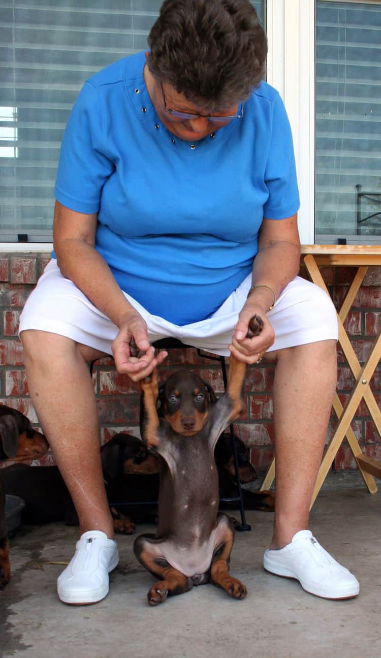The pups came out to the Garretts this week. On Sunday the 13th, Pat and her daughter, Tina, brought the pups out. We had a "puppy party". Three owners met Pat at the Garretts. And, four pups went home -- a red male, both black males, and a red female.