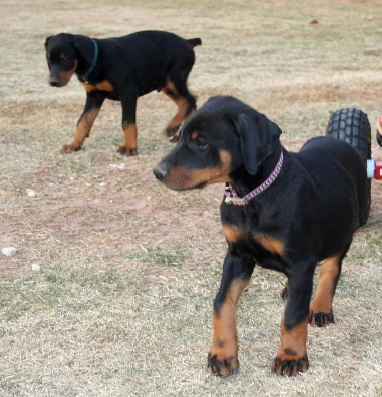 Red and Green collar Males playing with our Aggie