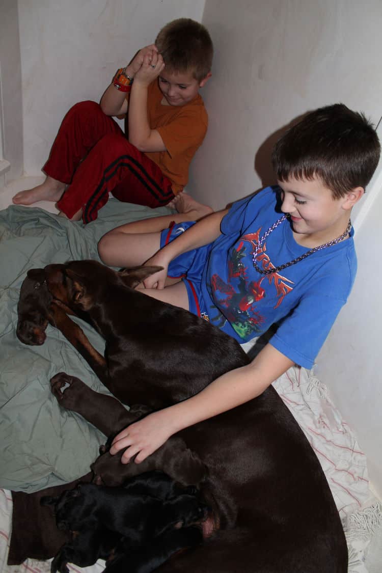 This first week has been a blast! Having pups through the holidays while friends and family are either out of school or off work has allowed us to share this wonderful experience. As you will see, lots of extra hands held the pups. Not all visiting humans were captured by photo. No adults are shown, but let it be known both grandmothers of children got to spend some good time with the new babies!