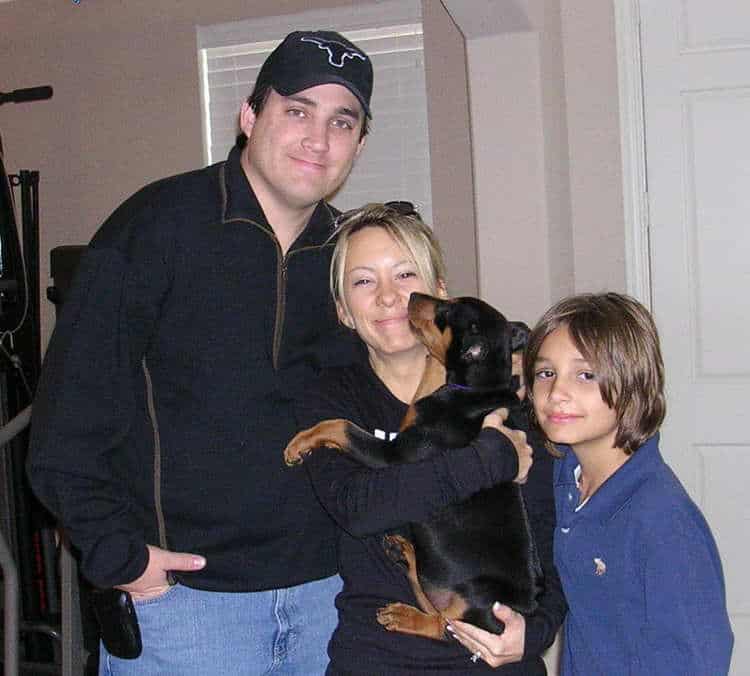 January 7, 2006 - "Here Laura, I really want you to see this picture....it shows how good Dobes are with children! He is SO good with Zakk - they love to play chase and wrestle!"